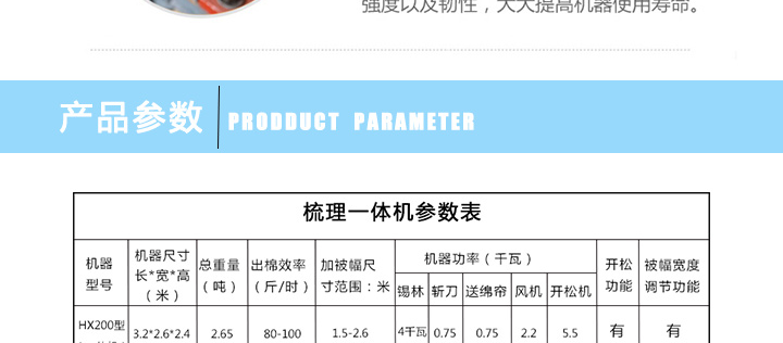 特別備注:開機前請詳細閱讀本說明書 。 產品簡介: 開松梳理一體機是梳理舊毛衣毛線,棉花,羊毛,中空纖維,舊棉絮的理想設備。機型 方便快捷,有...