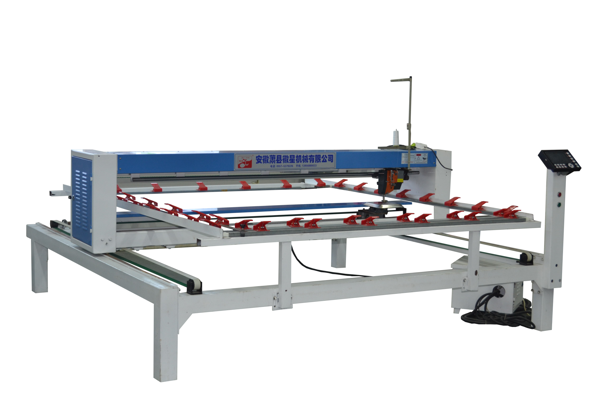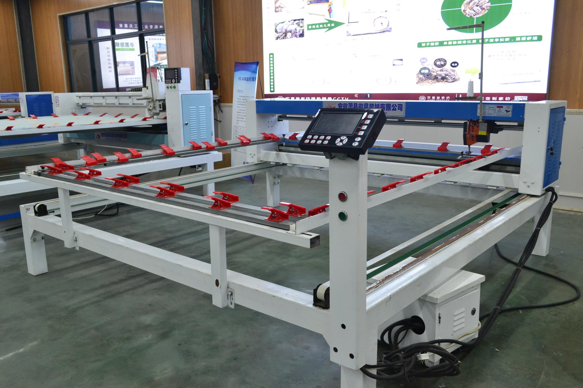 配備新一代絎縫機專用電腦,內部實時檢測,確保不拉壞被子;LED高亮度工作燈,夜間作業穿線更加安全方便;